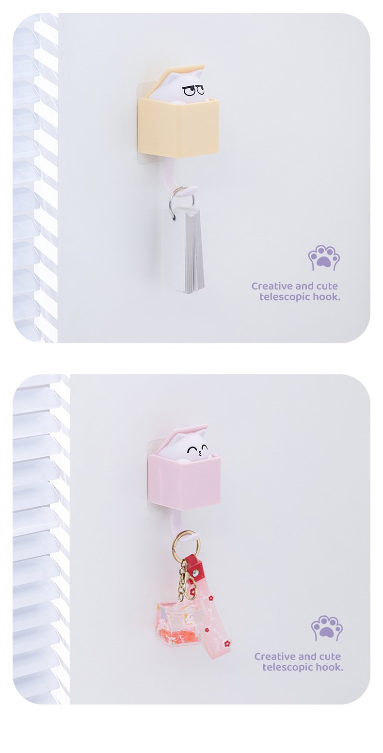 Lindo gancho para gato, gancho de pared telescópico, gancho de pared multiusos, adhesivo sin daños,